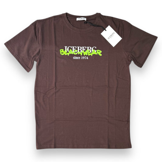 T-shirt ICEBERG BEACHWEAR, con stampa frontale, Col.Marrone