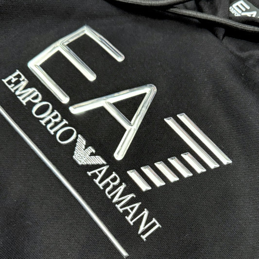 Felpa EMPORIO ARMANI Donna oversize con cappuccio, tex. felpato, con logo in rilievo argento, Col.Nero (veste grande, si consiglia una tg. In meno)