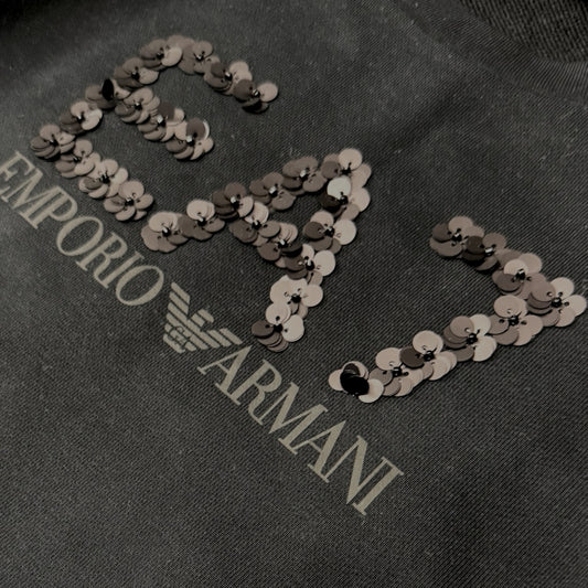 Felpa EMPORIO ARMANI Donna girocollo, tex. garzato, con logo con paillettes, Col.Nero