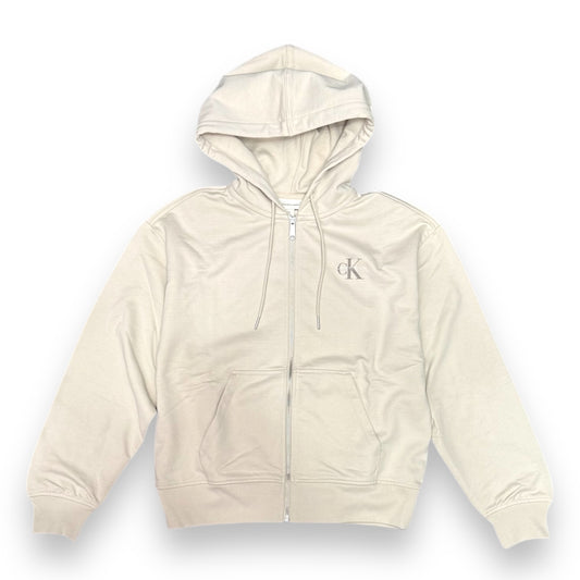 Felpa CALVIN KLEIN Donna con cappuccio e zip, tex. cotone garzato, Col.Beige
