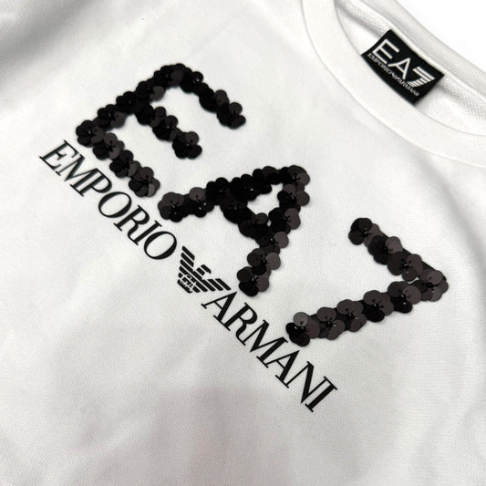 Felpa EMPORIO ARMANI Donna girocollo, tex. garzato, con logo con paillettes, Col.Bianco