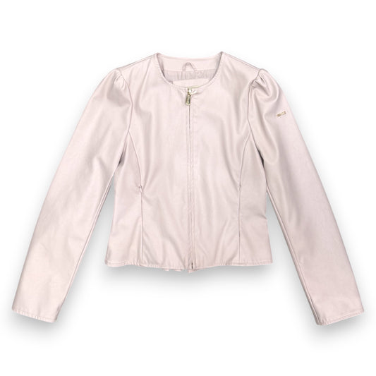 Giacca in ecopelle YES-ZEE, con rouches sulle spalle e sul retro, Col.Cipria