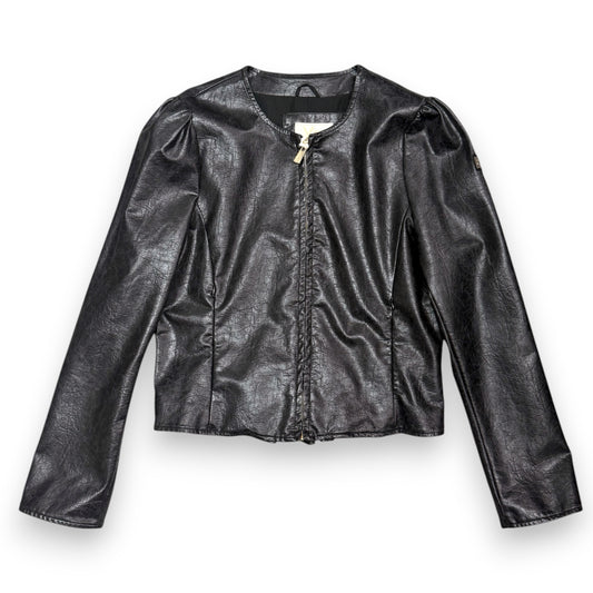 Giacca in ecopelle YES-ZEE, con rouches sulle spalle e sul retro, Col.Nero martellato