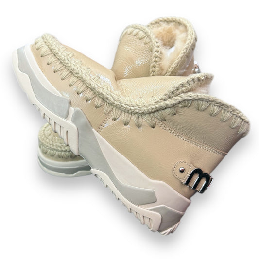 Stivaletto MOU Donna, Eskimo trainerbig Vera pelle di montone, Col. Beige lucido (Stone metallic)