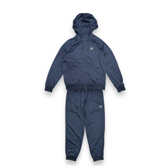 Tuta Completa EA7 in tessuto acetato con zip e cappuccio e ricamo sulla schiena, Col.Blu