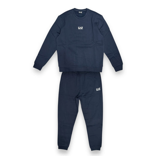 Tuta Completa EA7 felpata a girocollo con stampa piccola centrale,Col.Blu