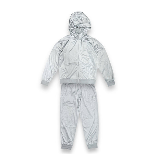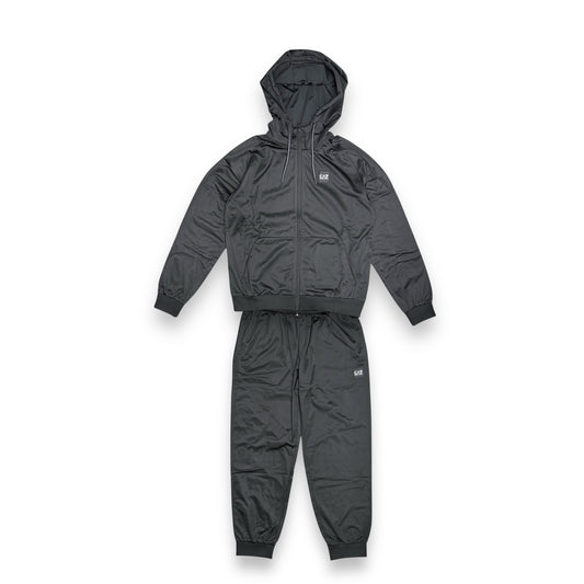 Tuta Completa EA7 in tessuto acetato con zip e cappuccio e ricamo sulla schiena, Col.Grigio