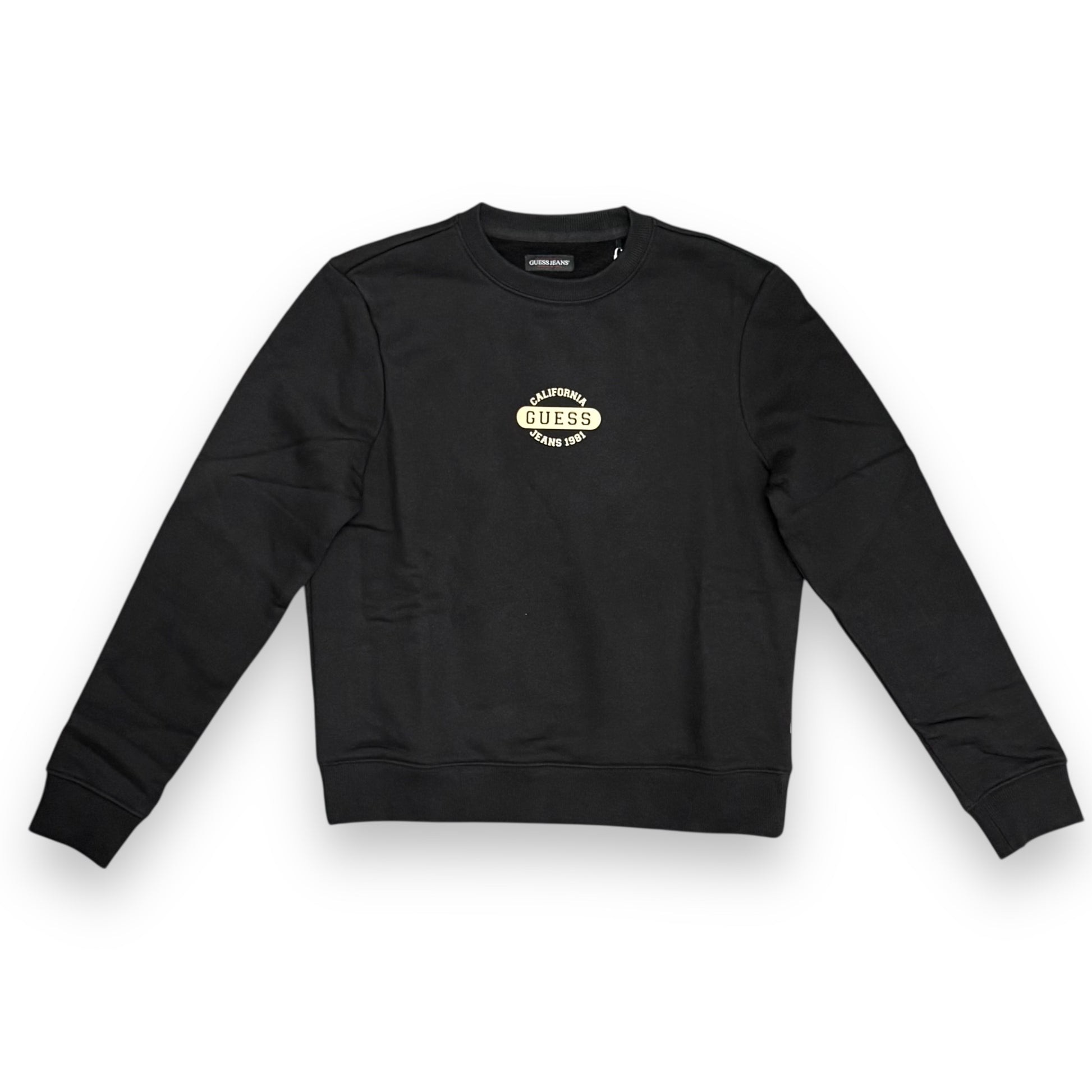 Felpa GUESS JEANS Donna girocollo con logo frontale, tex. felpato, Col.Nero (California GUESS Jeans 1981)